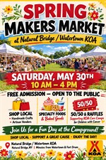 Open to Public--Local Shopping for Handmade Crafts; Artisan Vendors; specialty food; baked goods; raffles & 50/50 supporting KOA Care Camps for children with cancer. Join us for a fun day at the campground.
